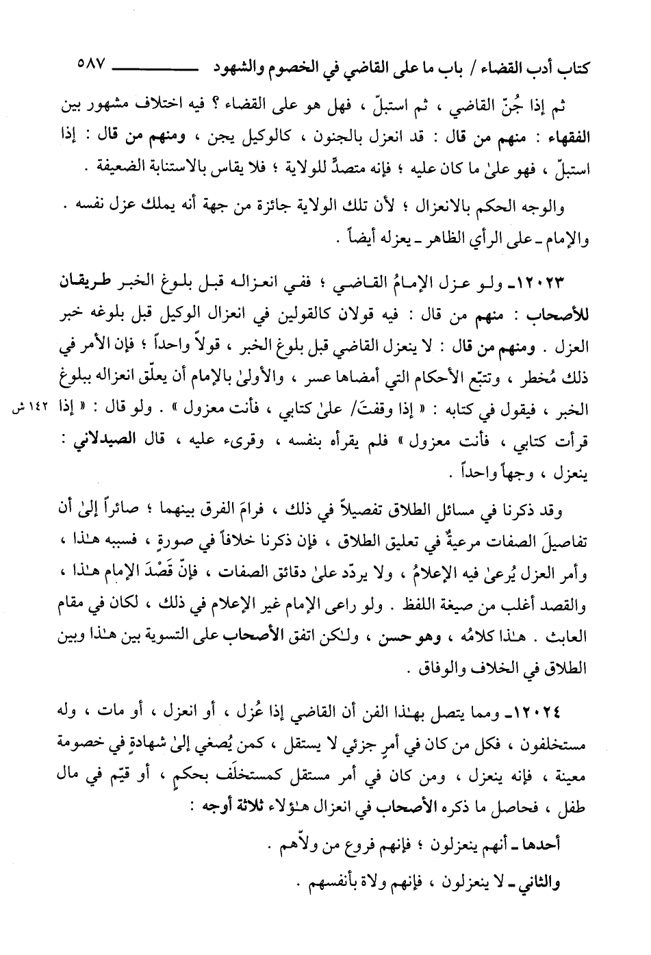 ثم إذا جُنّ القاضي، ثم استبلّ، فهل هو على القضاء؟ فيه اختلاف مشهور بين الفقهاء: منهم من قال: قد انعزل بالجنون، كالوكيل يجن، ومنهم من قال: إذا استبلّ، فهو على ما كان عليه؛ فإنه متصدٍّ للولاية؛ فلا يقاس بالاستنابة الضعيفة.