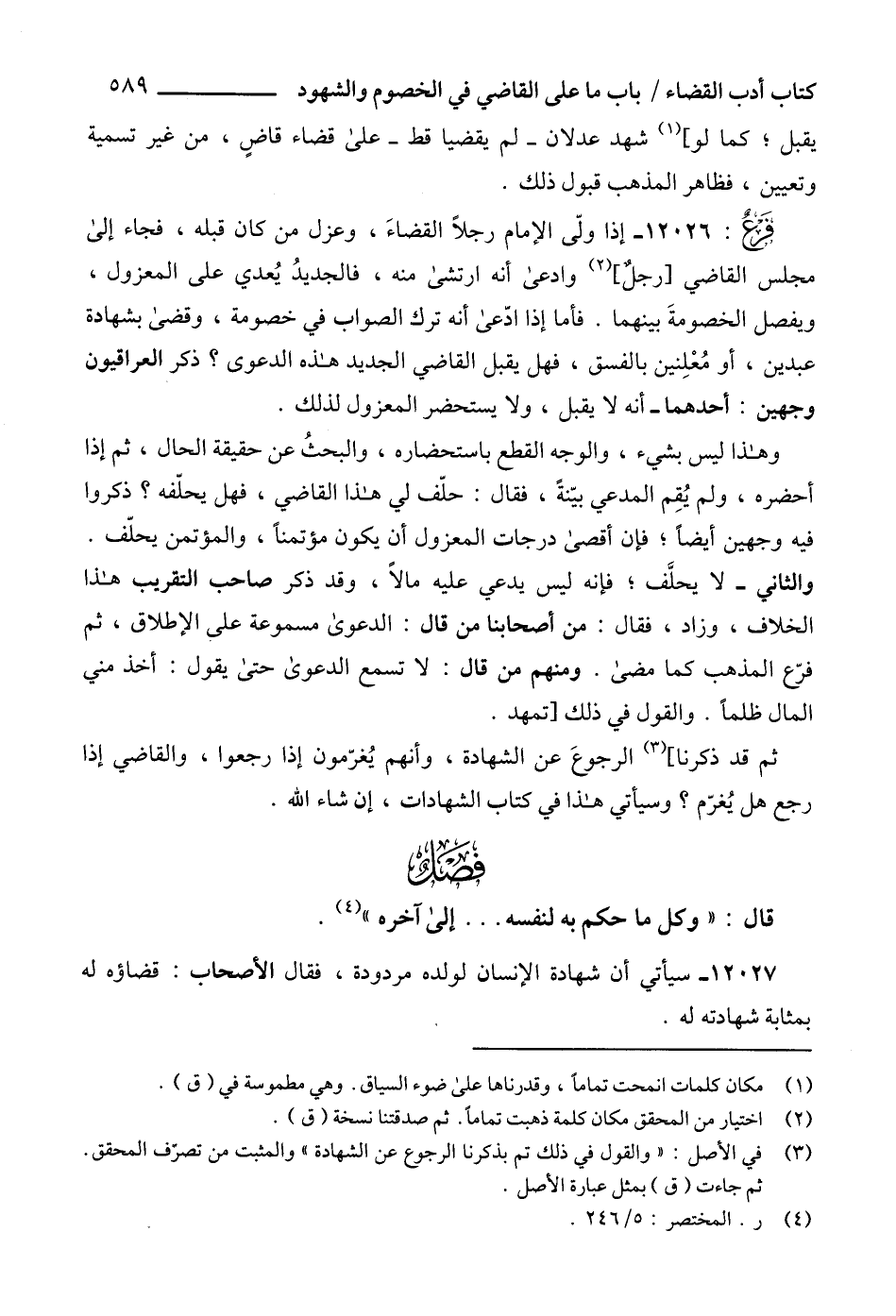 (2) اختيار من المحقق مكان كلمة ذهبت تماماً. ثم صدقتنا نسخة (ق).