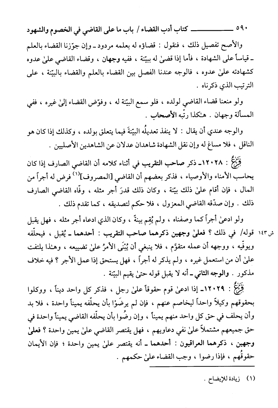 12028 - ذكر صاحب التقريب في أثناء كلامه أن القاضي الصارف إذا كان يحاسب الأمناء والأوصياء، فذكر بعضهم أن القاضي [المصروف] (1) فرض له أجراً من المال، فإن أقام على ذلك بيّنة، وكان ذلك قدرَ أجر مثله، وفّاه القاضي الصارف ذلك. وإن صدّقه القاضي المعزول، فلا حكم لتصديقه، كما تقدم ذلك.