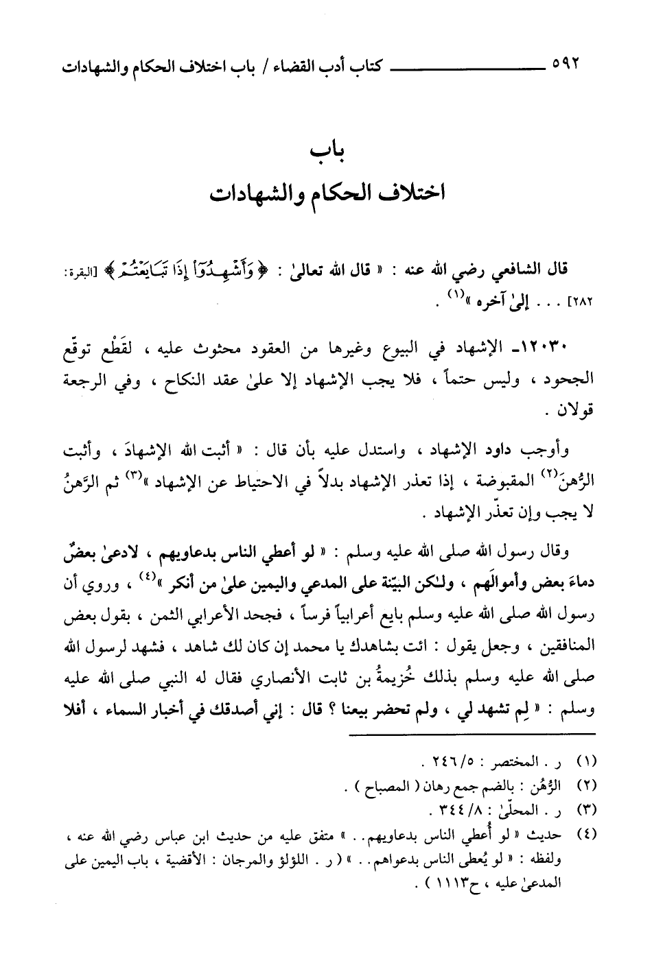 (4) حديث " لو أعطي الناس بدعاويهم .. " متفق عليه من حديث ابن عباس رضي الله عنه، ولفظه: " لو يُعطى الناس بدعواهم .. " (ر. اللؤلؤ والمرجان: الأقضية، باب اليمين على المدعى عليه، ح 1113).
