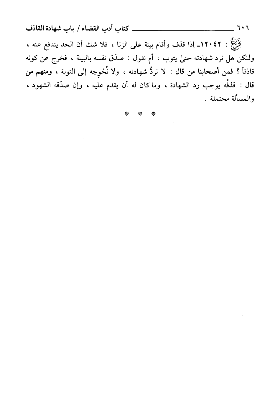 12042 - إذا قذف وأقام بينة على الزنا، فلا شك أن الحد يندفع عنه، ولكن هل نرد شهاته حتى يتوب، أم نقول: صدّق نفسه بالبينة، فخرج عن كونه قاذفاً؟ فمن أصحابنا من قال: لا نردُّ شهاته، ولا نُحْوِجه إلى التوبة، ومنهم من قال: قذفُه يوجب رد الشهادة، وما كان له أن يقدم عليه، وإن صدّقه الشهود، والمسألة محتملة.