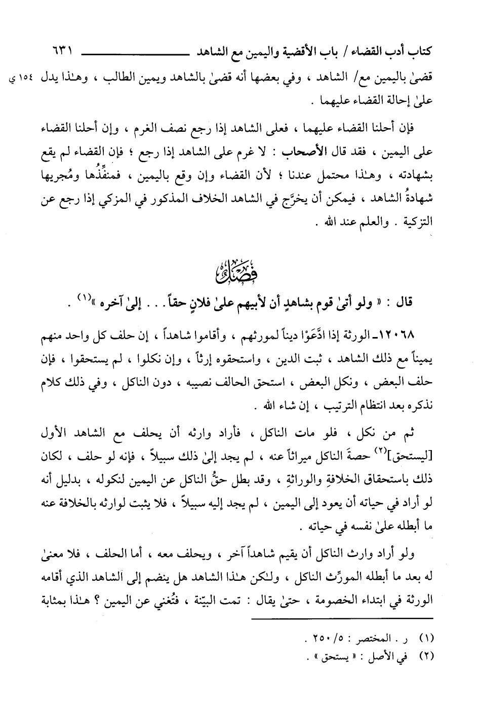 12068 - الورثة إذا ادَّعَوْا ديناً لمورثهم، وأقاموا شاهداًً، إن حلف كل واحد منهم يميناً مع ذلك الشاهد، ثبت الدين، واستحقوه إرثاً، وإن نكلوا، لم يستحقوا، فإن حلف البعض، ونكل البعض، استحق الحالف نصيبه، دون الناكل، وفي ذلك كلام نذكره بعد انتظام الترتيب، إن شاء الله.