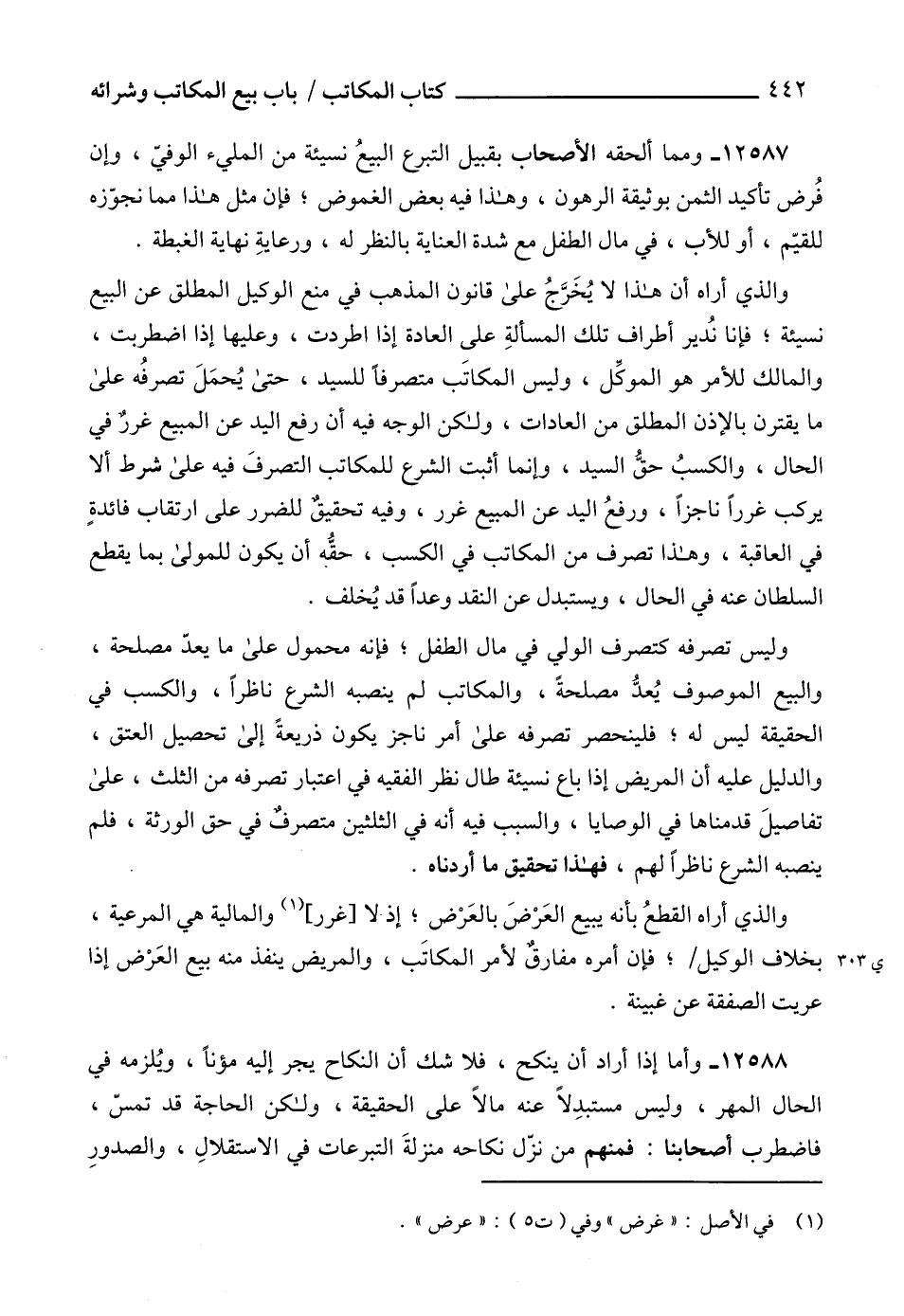 12587 - ومما ألحقه الأصحاب بقبيل التبرع البيعُ نسيئة من المليء الوفى، وإن فُرض تأكيد الثمن بوثيقة الرهون، وهذا فيه بعض الغموض؛ فإن مثل هذا مما نجوّزه للقيّم، أو للأب، في مال الطفل مع شدة العناية بالنظر له، ورعايةِ نهاية الغبطة.