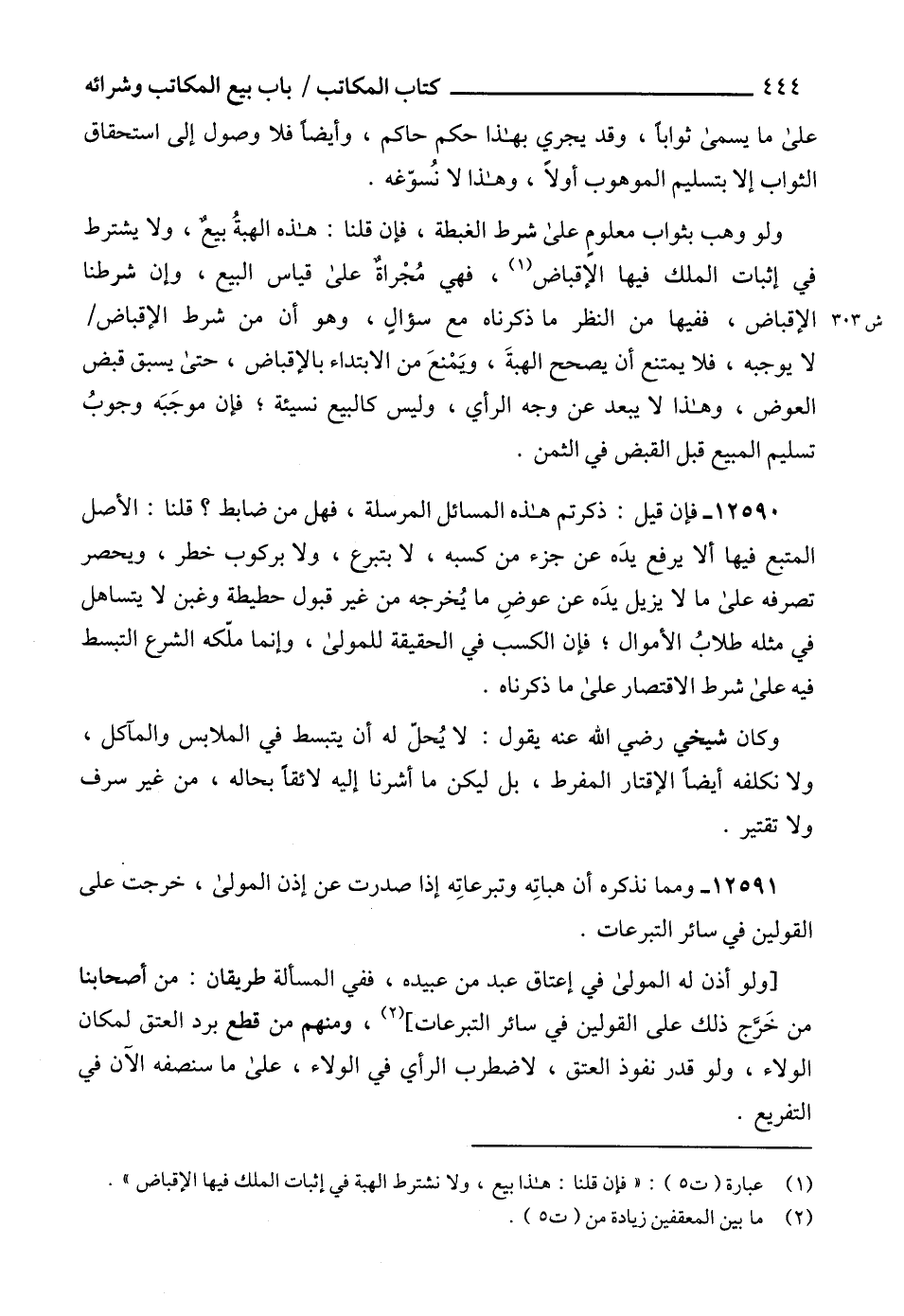 12591 - ومما نذكره أن هباتِه وتبرعاتِه إذا صدرت عن إذن المولى، خرجت على القولين في سائر التبرعات.