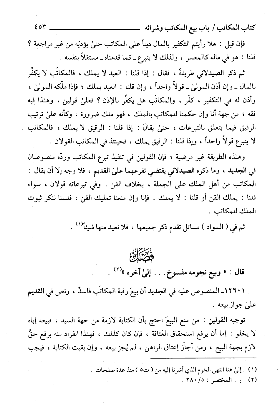 12601 - المنصوص عليه في الجديد أن بيعَ رقبة المكاتَب فاسدٌ، ونص في القديم على جواز بيعه.
