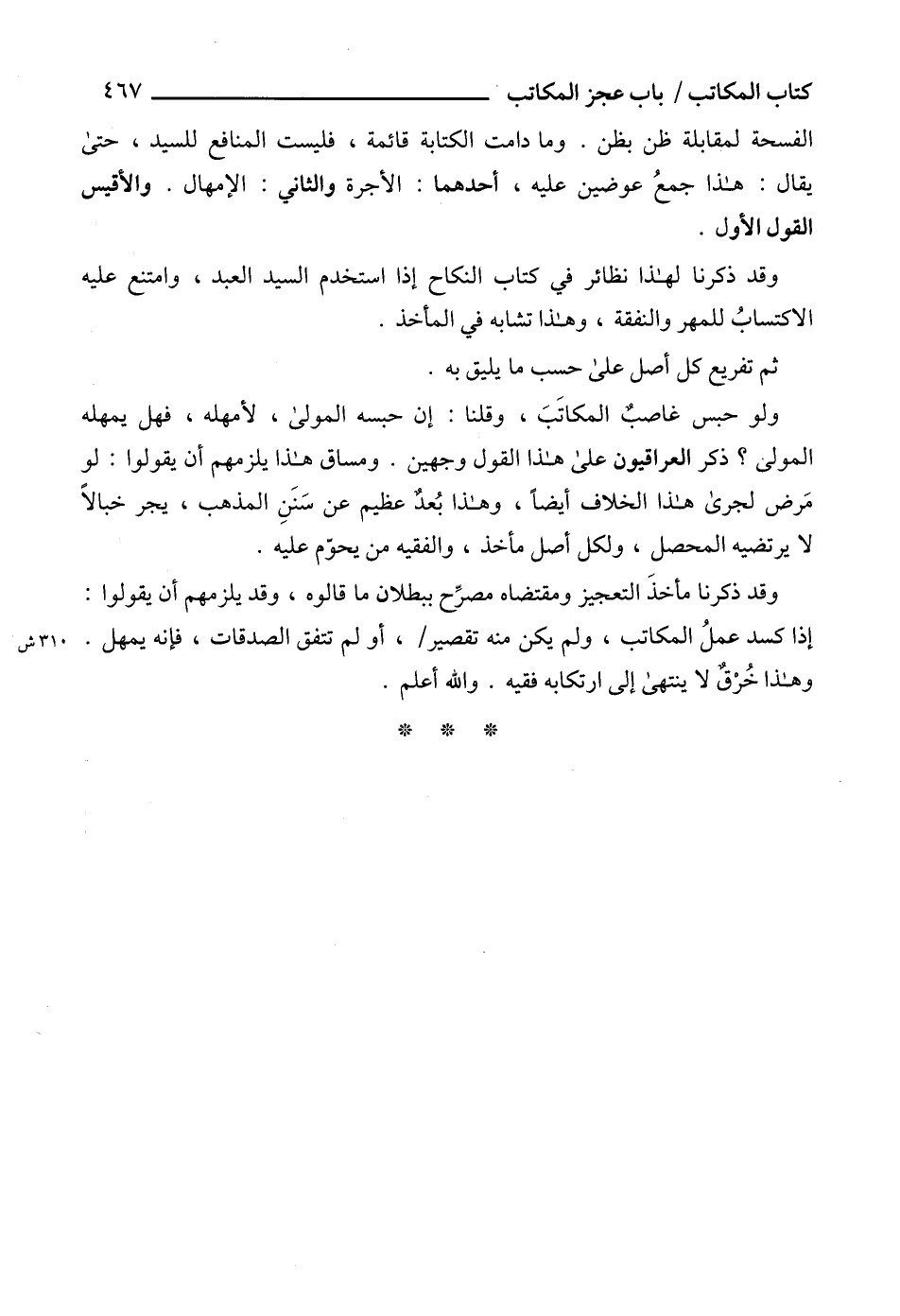 وقد ذكرنا مأخذَ التعجيز ومقتضاه مصرِّح ببطلان ما قالوه، وقد يلزمهم أن يقولوا: إذا كسد عملُ المكاتب، ولم يكن منه تقصير، أو لم تتفق الصدقات، فإنه يمهل وهذا خُرْقٌ لا ينتهى إلى ارتكابه فقيه. والله أعلم.