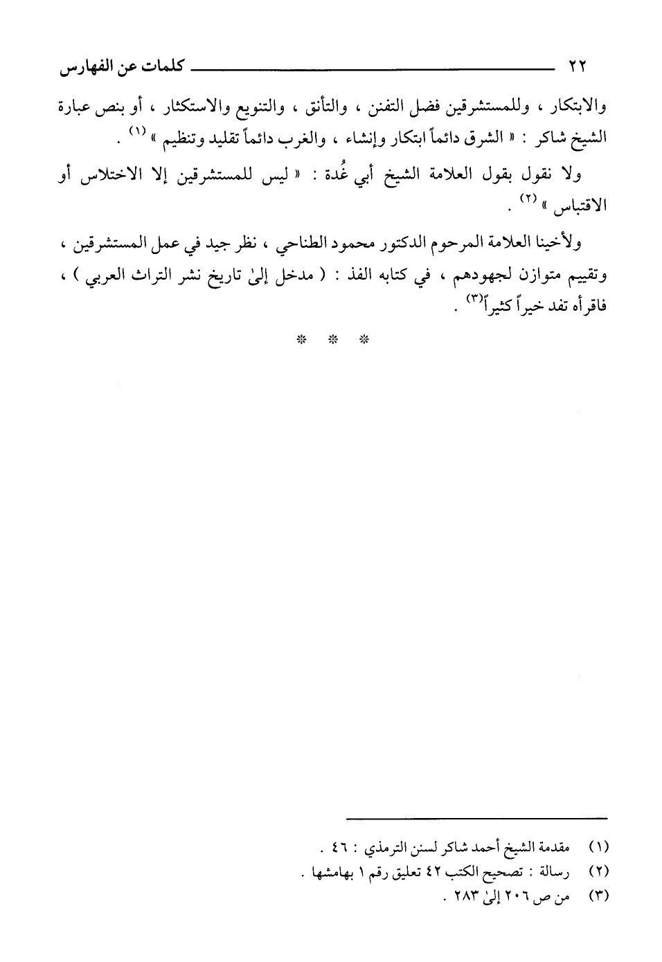ولأخينا العلامة المرحوم الدكتور محمود الطناحي، نظر جيد في عمل المستشرقين، وتقييم متوازن لجهودهم، في كتابه الفذ: (مدخل إلى تاريخ نشر التراث العربي)، فاقرأه تفد خيراً كثيراً (3).