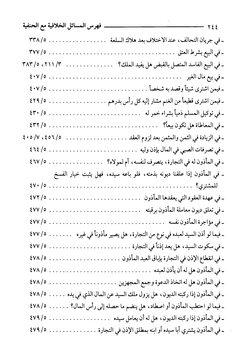 - في المأذون يشتري أبا سيده أو ابنه بمطلق الإذن في التجارة ... 5/ 479