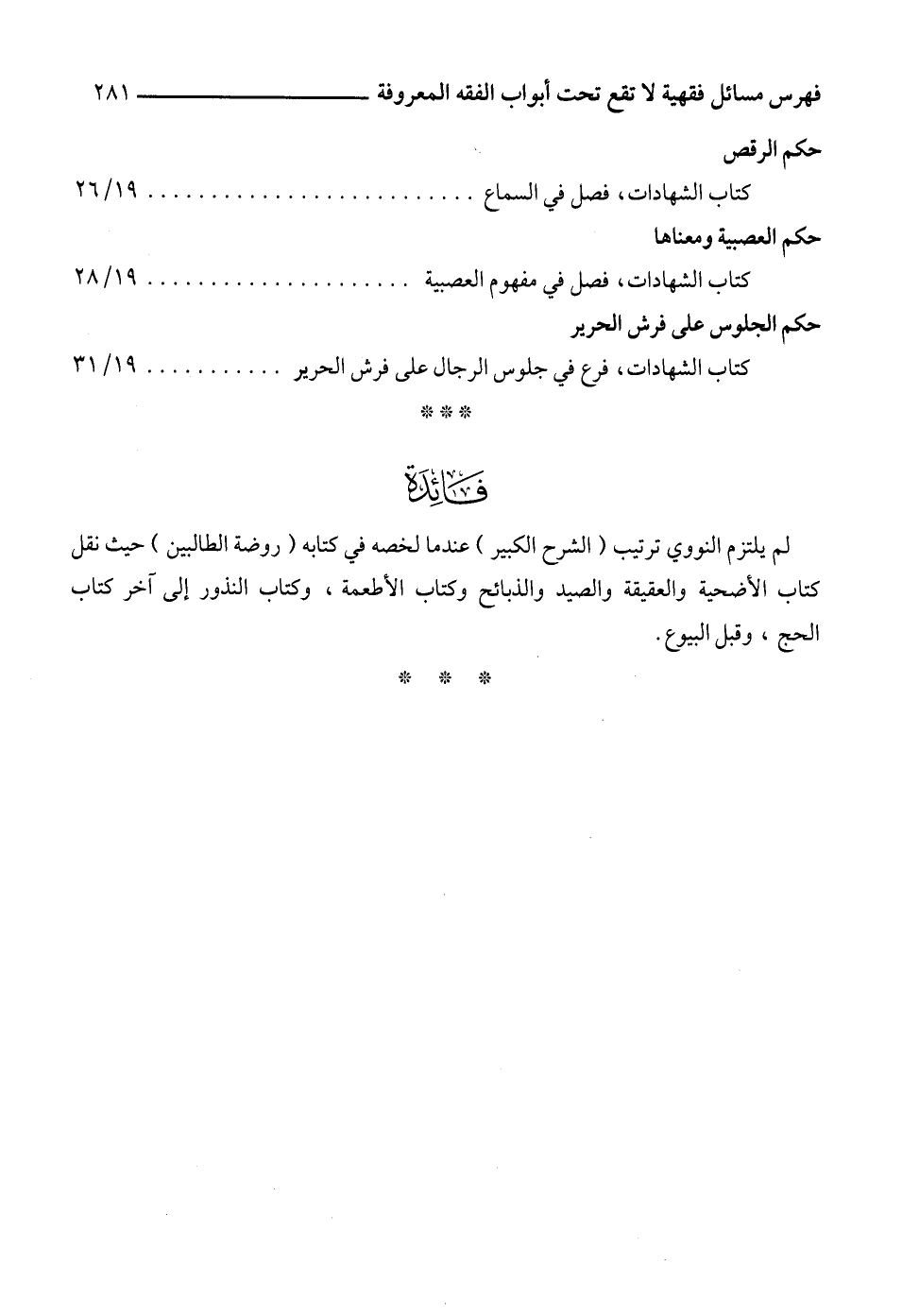 لم يلتزم النووي ترتيب (الشرح الكبير) عندما لخصه في كتابه (روضة الطالبين) حيث نقل