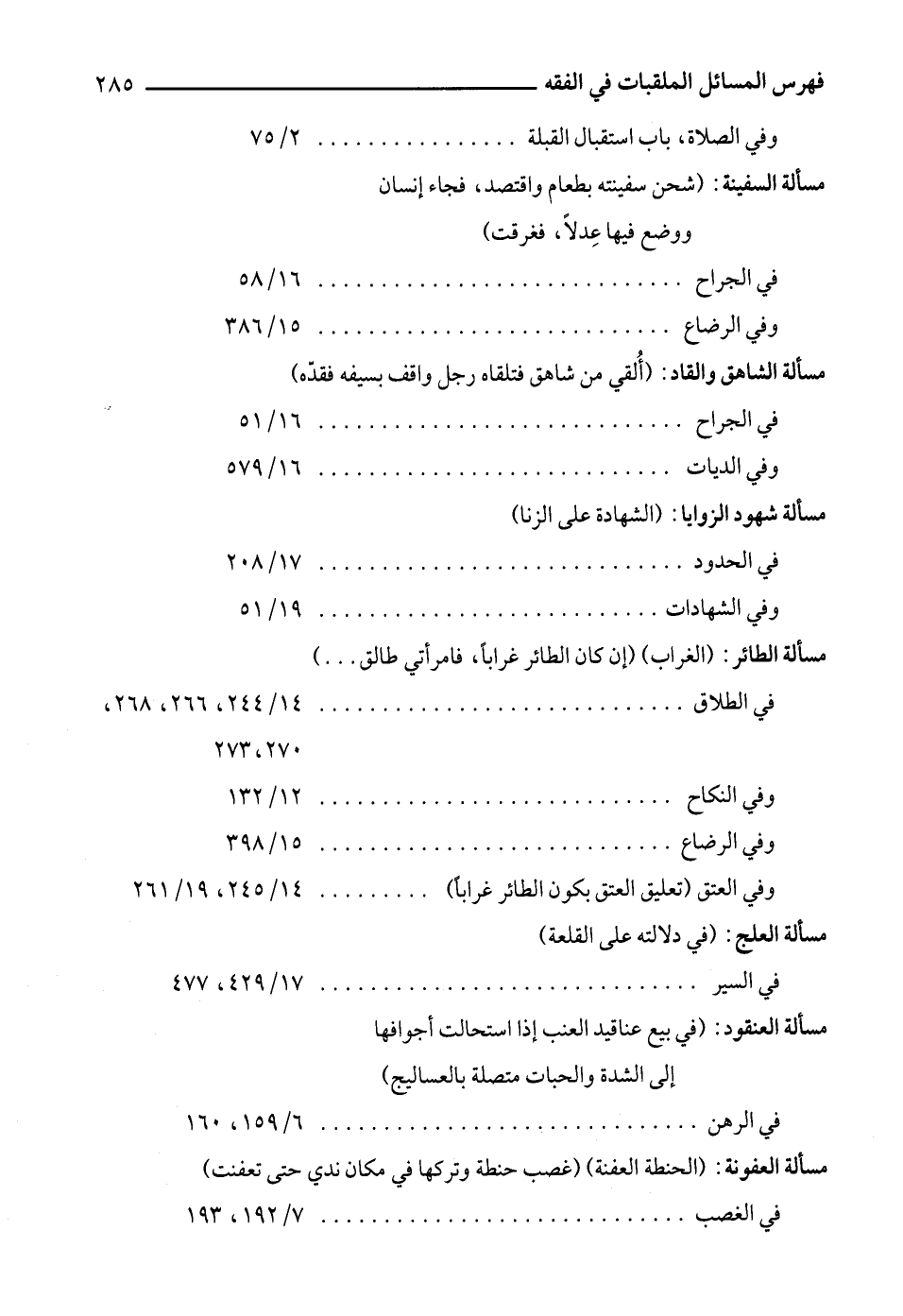 وفي العتق (تعليق العتق بكون الطائر غراباً) ... 14/ 245، 19/ 261