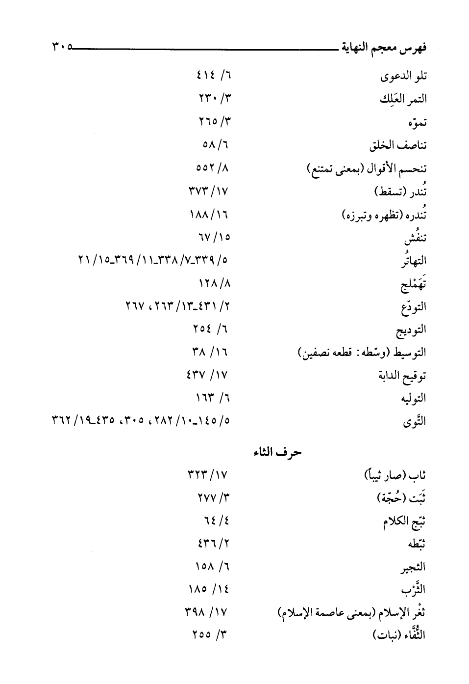 التَّوى ... 5/ 145 - 10/ 282، 305، 435 - 19/ 362