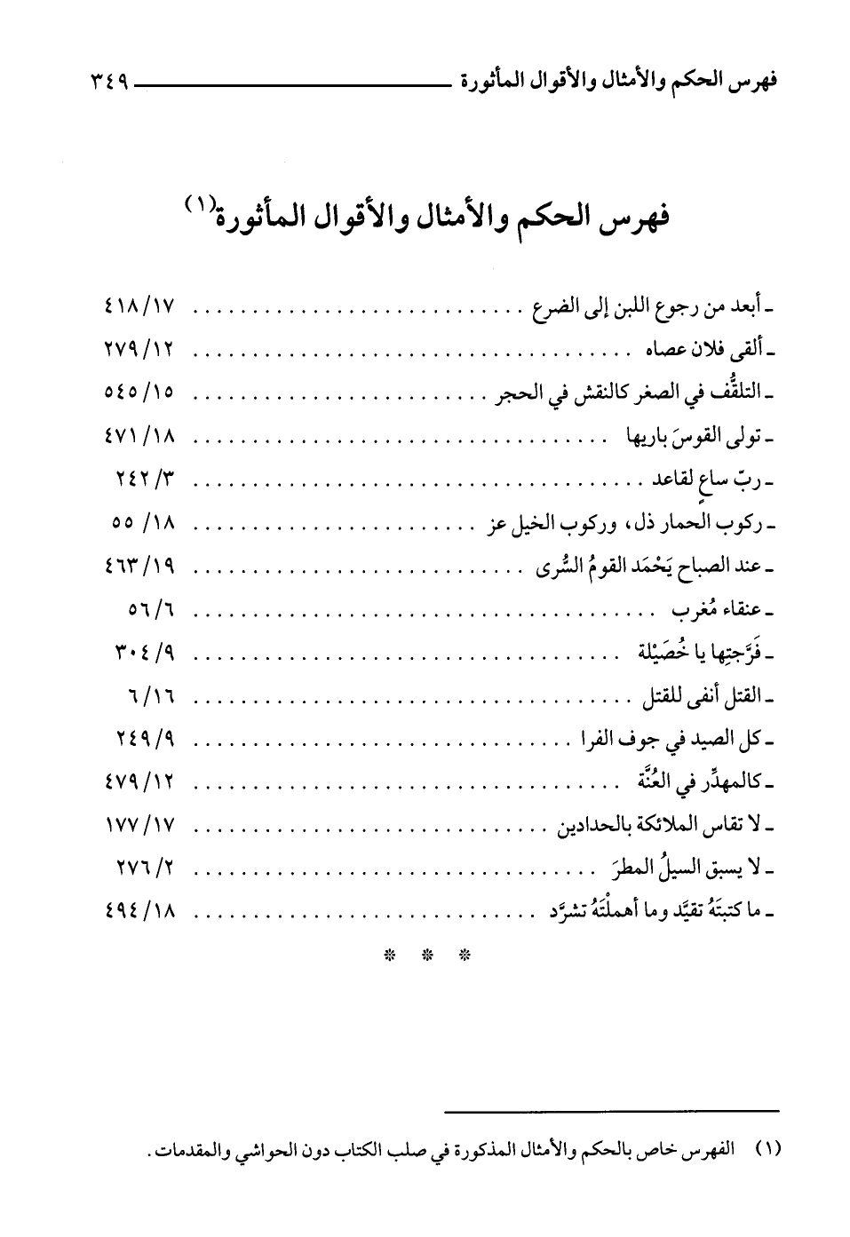 (1) الفهرس خاص بالحكم والأمثال المذكورة في صلب الكتاب دون الحواشي والمقدمات.
