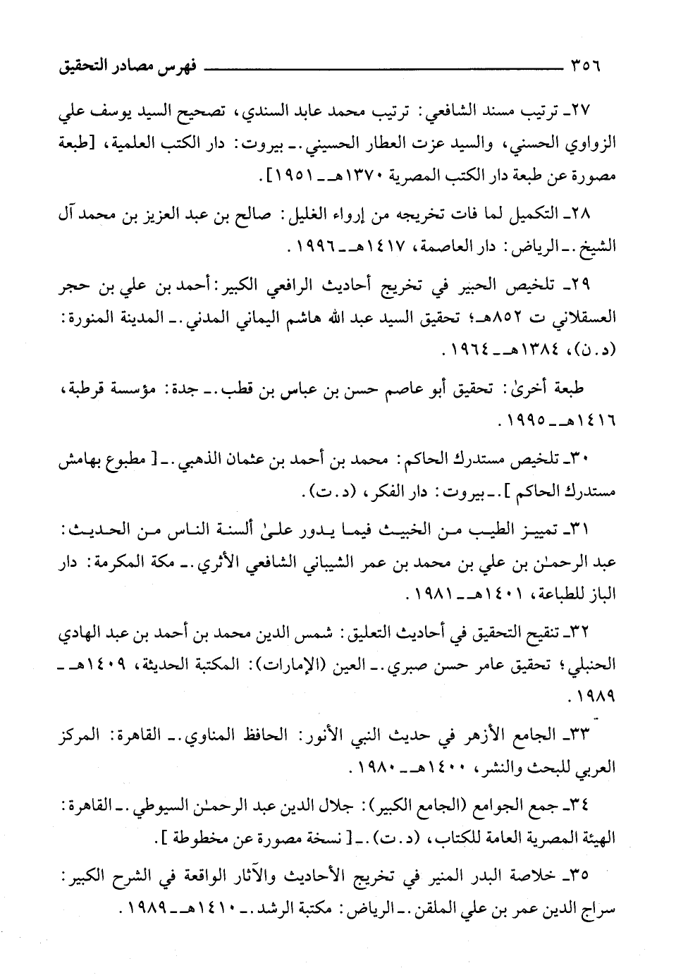 35 - خلاصة البدر المنير في تخريج الأحاديث والآثار الواقعة في الشرح الكبير: سراج الدين عمر بن علي الملقن. - الرياض: مكتبة الرشد. - 1410هـ - 1989.