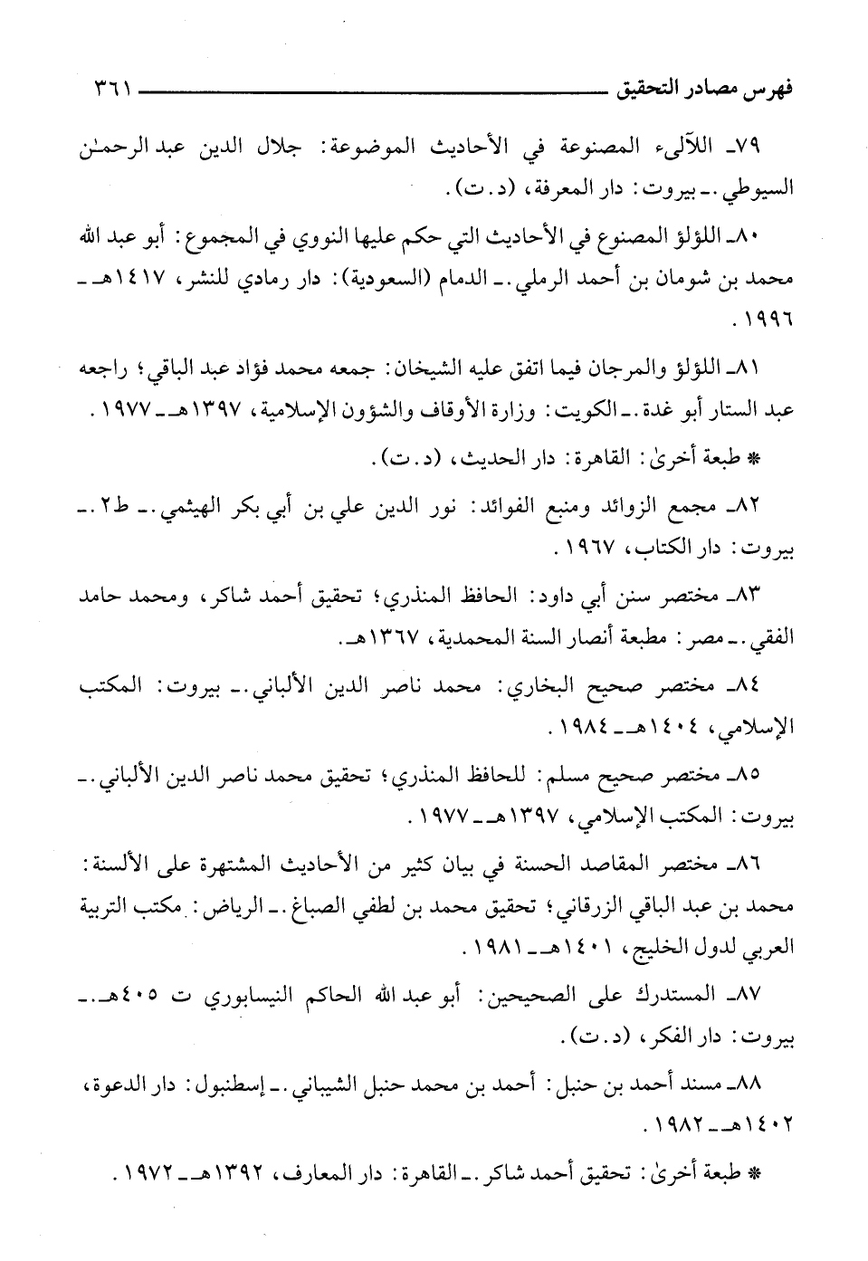 79 - اللآلئ المصنوعة في الأحاديث الموضوعة: جلال الدين عبد الرحمن السيوطي. - بيروت: دار المعرفة، (د. ت).