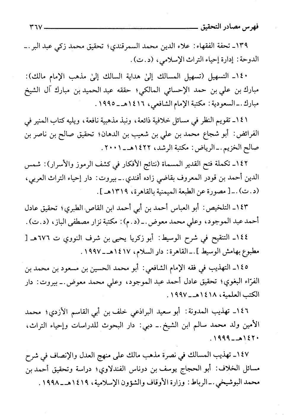 145 - التهذيب في فقه الإمام الشافعي: أبو محمد الحسين بن مسعود بن محمد بن الفرّاء البغوي؛ تحقيق عادل أحمد عبد الموجود، وعلي محمد معوض. - بيروت: دار الكتب العلمية، 1418هـ - 1997.