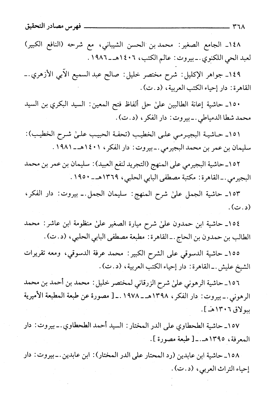 158 - حاشية ابن عابدين (رد المحتار على الدر المختار): ابن عابدين. - بيروت: دار إحياء التراث العربي، (د. ت).