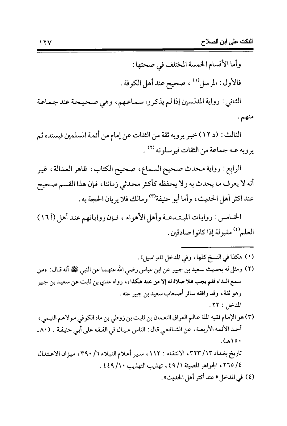 الرَّابِع رِوَايَة مُحدث صَحِيح السماع صَحِيح الْكتاب ظَاهر الْعَدَالَة غير أَنه لَا يعرف مَا يحدث بِهِ وَلَا يحفظه كأكثر محدثي زَمَاننَا فَإِن هَذَا الْقسم صَحِيح عِنْد أَكثر أهل الحَدِيث وَأما أَبُو حنيفَة وَمَالك فَلَا يريان الْحجَّة بِهِ