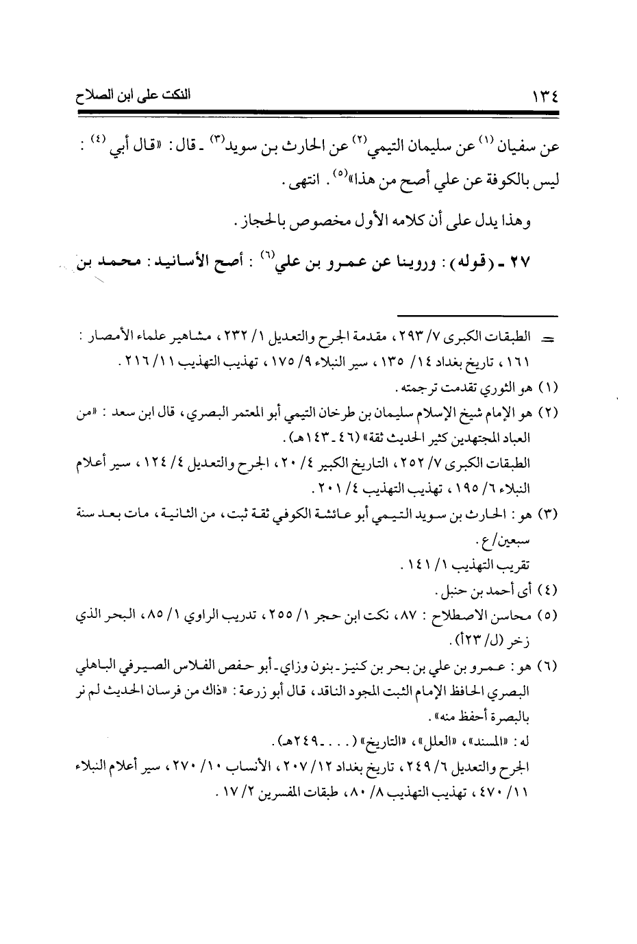 27 - (قَوْله) وروينا عَن عَمْرو بن عَليّ أصح الْأَسَانِيد مُحَمَّد بن