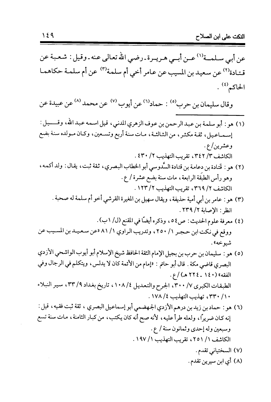 عَن أبي سَلمَة عَن أبي هُرَيْرَة - رَضِي الله تَعَالَى عَنهُ - وَقيل شُعْبَة عَن قَتَادَة عَن سعيد بن الْمسيب عَن عَامر أخي أم سَلمَة عَن أم سَلمَة حَكَاهُمَا الْحَاكِم