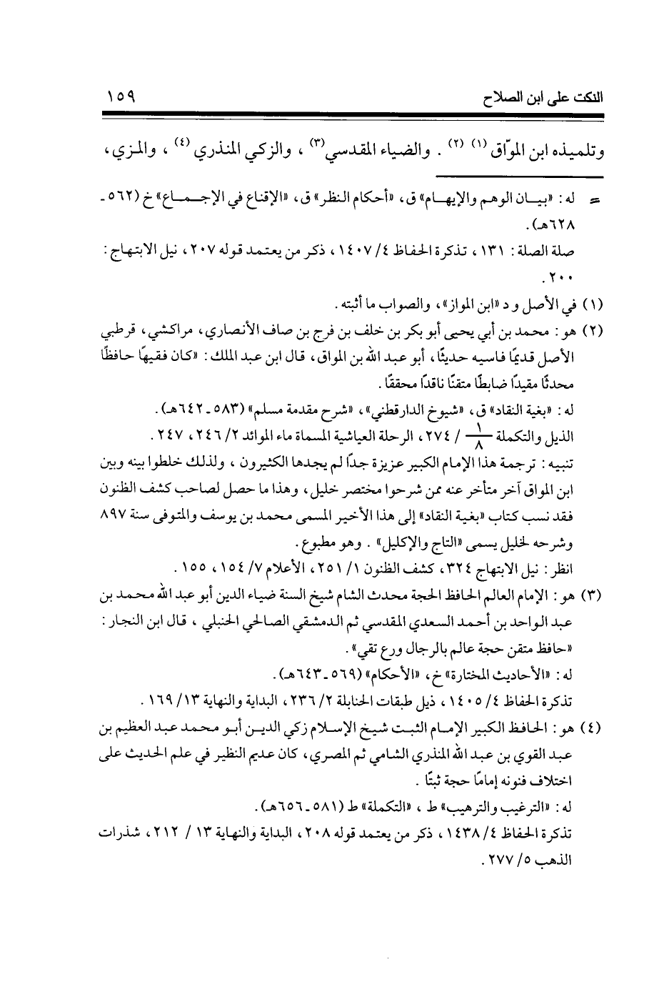 وتلميذه ابْن الْمواق والضياء الْمَقْدِسِي والزكي الْمُنْذِرِيّ والمزي