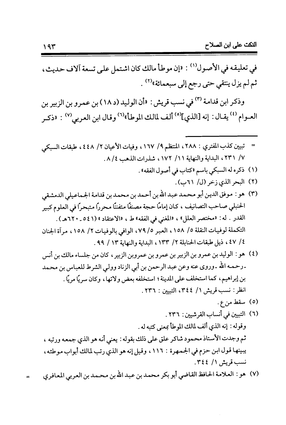وَذكر ابْن قدامَة فِي نسب قُرَيْش أَن الْوَلِيد (د 18) بن عَمْرو بن الزبير بن الْعَوام يُقَال إِنَّه [الَّذِي] ألف لمَالِك الْمُوَطَّأ وَقَالَ ابْن الْعَرَبِيّ ذكر