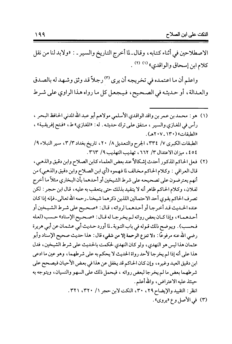 الاصطلاحين فِي أثْنَاء كِتَابه وَقَالَ - لما أخرج التَّارِيخ وَالسير - وَلَا بُد لنا من نقل كَلَام ابْن إِسْحَاق والواقدي
