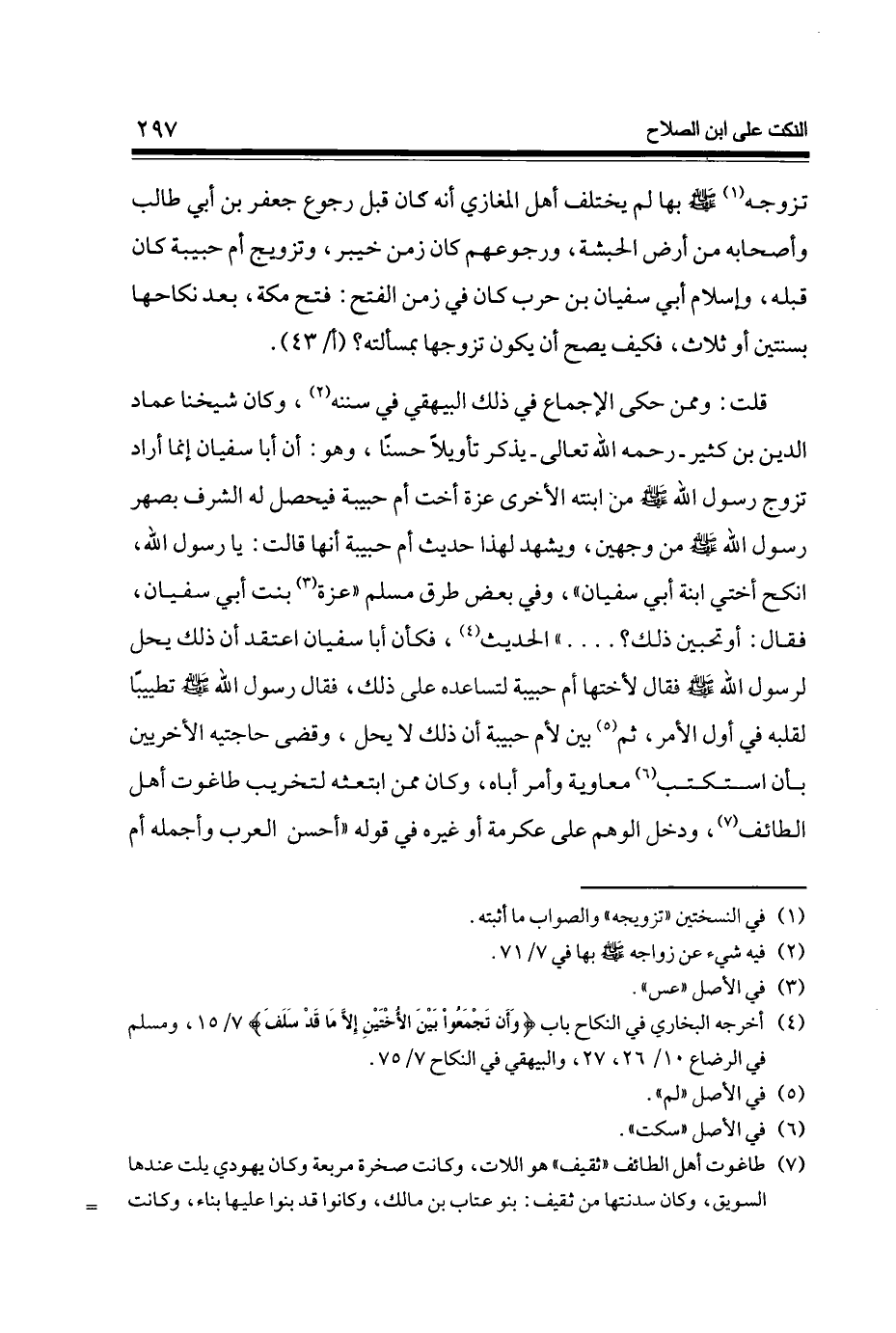 تزَوجه صلى الله عَلَيْهِ وَسلم بهَا لم يخْتَلف أهل الْمَغَازِي أَنه كَانَ قبل رُجُوع جَعْفَر بن أبي طَالب وَأَصْحَابه من أَرض الْحَبَشَة ورجوعهم كَانَ زمن خَيْبَر وتزويج أم حَبِيبَة كَانَ قبله وَإِسْلَام أبي سُفْيَان بن حَرْب كَانَ فِي زمن الْفَتْح فتح مَكَّة بعد نِكَاحهَا بِسنتَيْنِ أَو ثَلَاث فَكيف يَصح أَن يكون تزَوجهَا بمسألته (أ / 43)