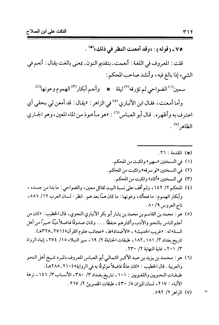75 - (قَوْله) وَقد أمعنت النّظر فِي ذَلِك