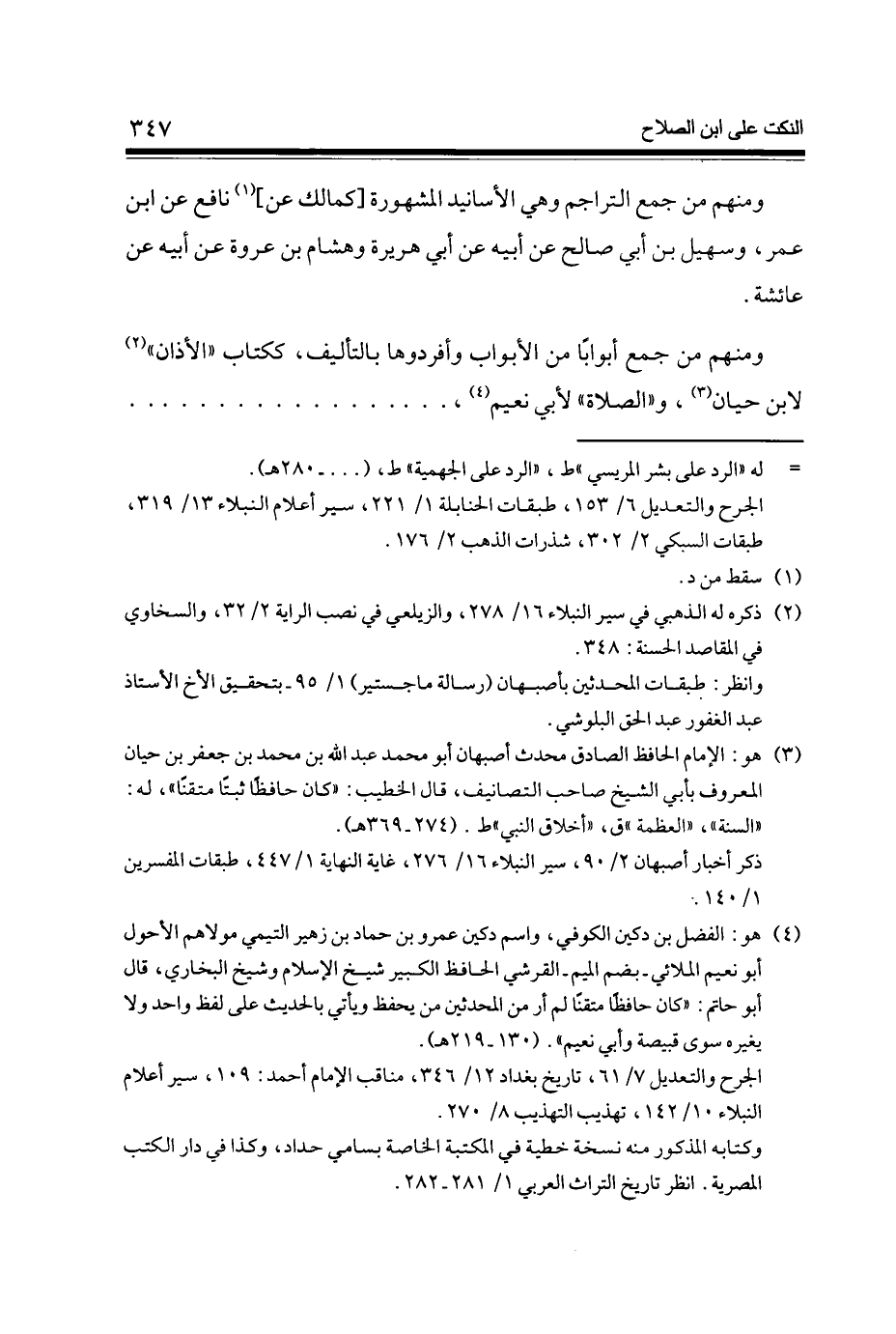 وَمِنْهُم من جمع أبوابا من الْأَبْوَاب وأفردوها بالتأليف ككتاب الْأَذَان لِابْنِ حَيَّان وَالصَّلَاة لأبي نعيم