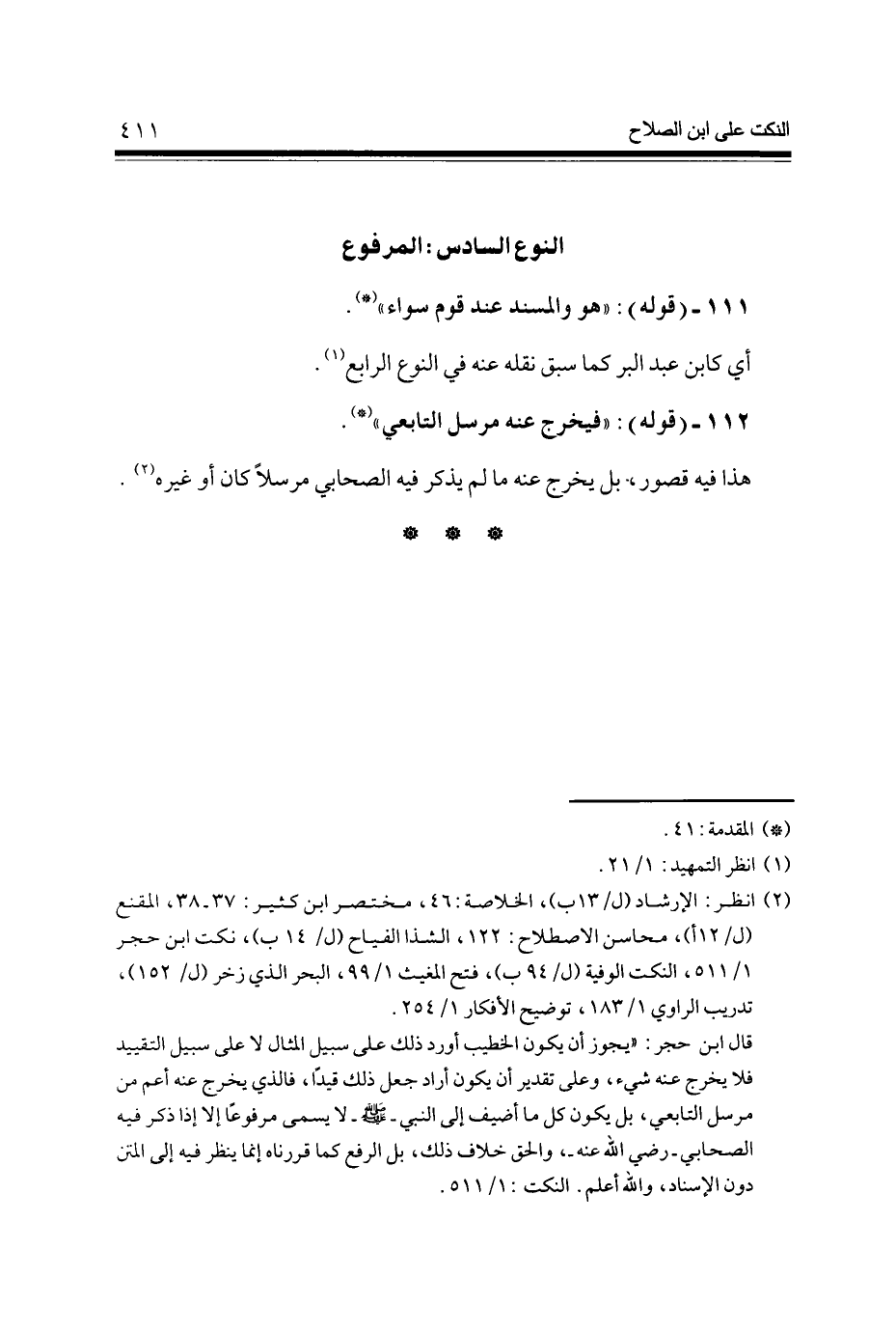 111 - (قَوْله) هُوَ والمسند عِنْد قوم سَوَاء