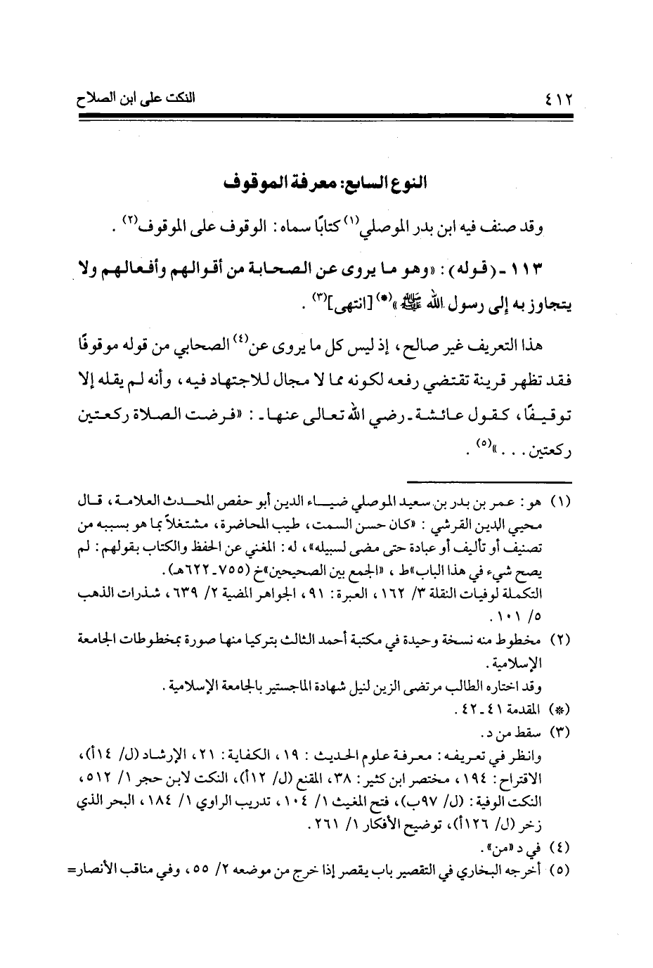 النَّوْع السَّابِع معرفَة الْمَوْقُوف