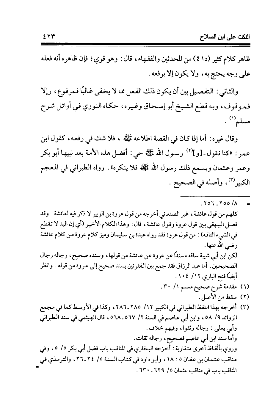 ظَاهر كَلَام كثير (د 41) من الْمُحدثين وَالْفُقَهَاء قَالَ وَهُوَ قوي فَإِن ظَاهره أَنه فعله على وَجه يحْتَج بِهِ وَلَا يكون إِلَّا بِرَفْعِهِ