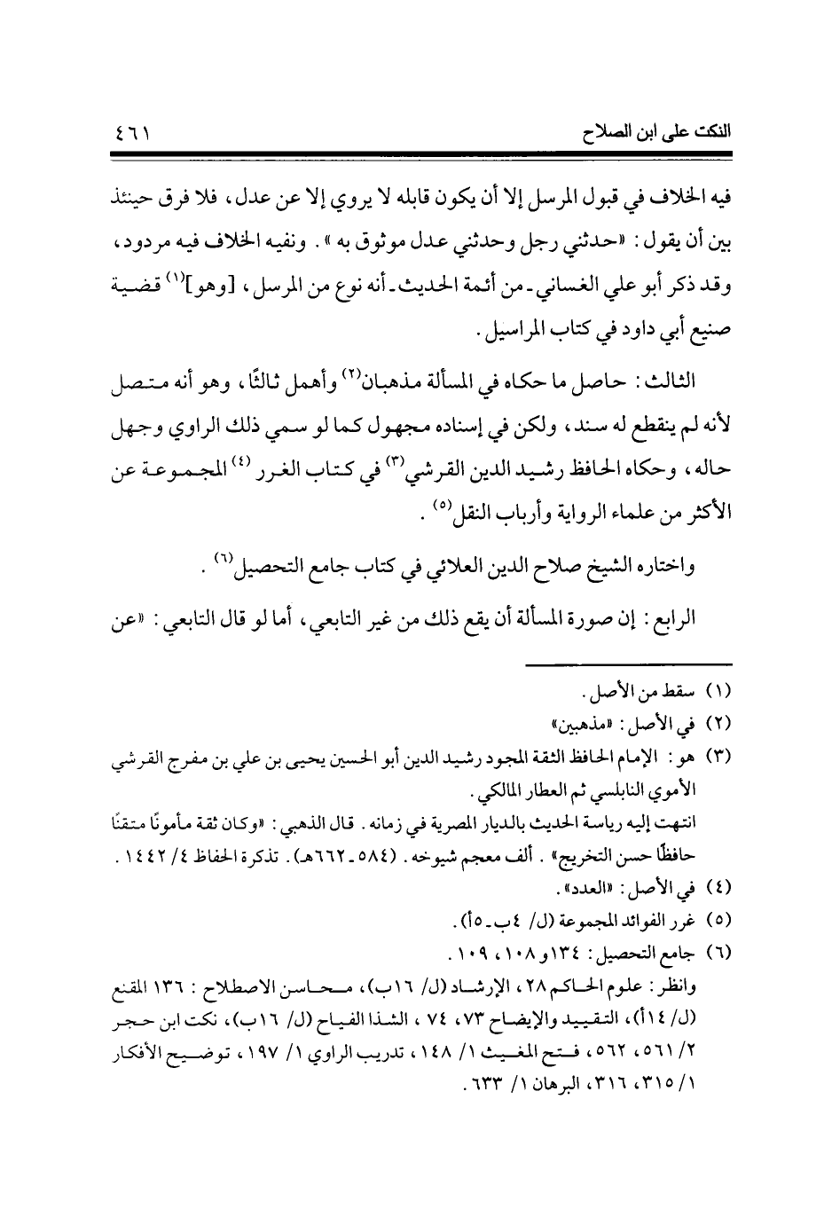 وَاخْتَارَهُ الشَّيْخ صَلَاح الدّين العلائي فِي كتاب جَامع التَّحْصِيل