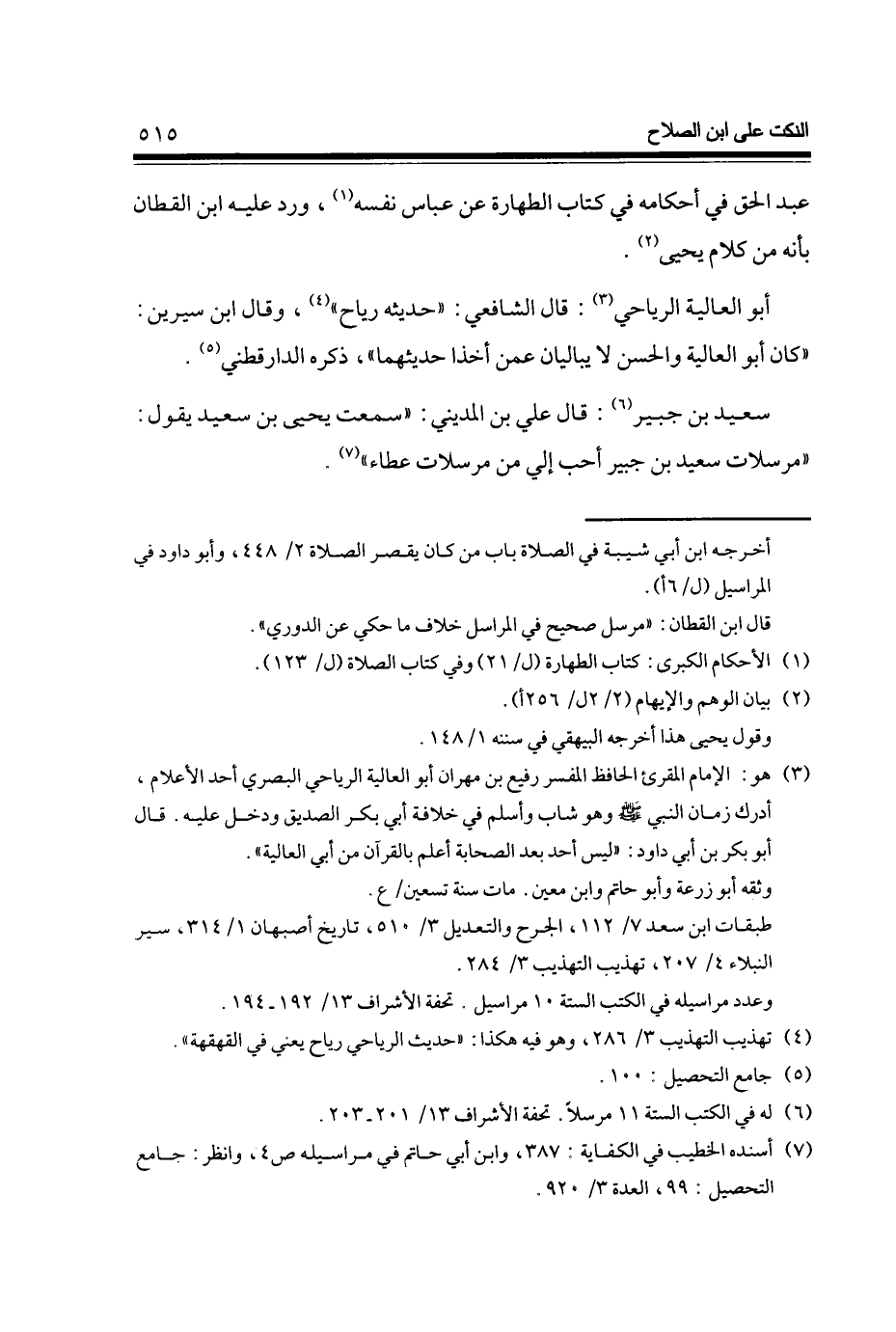 عبد الْحق فِي أَحْكَامه فِي كتاب الطَّهَارَة عَن عَبَّاس نَفسه ورد عَلَيْهِ ابْن الْقطَّان بِأَنَّهُ من كَلَام يحيى