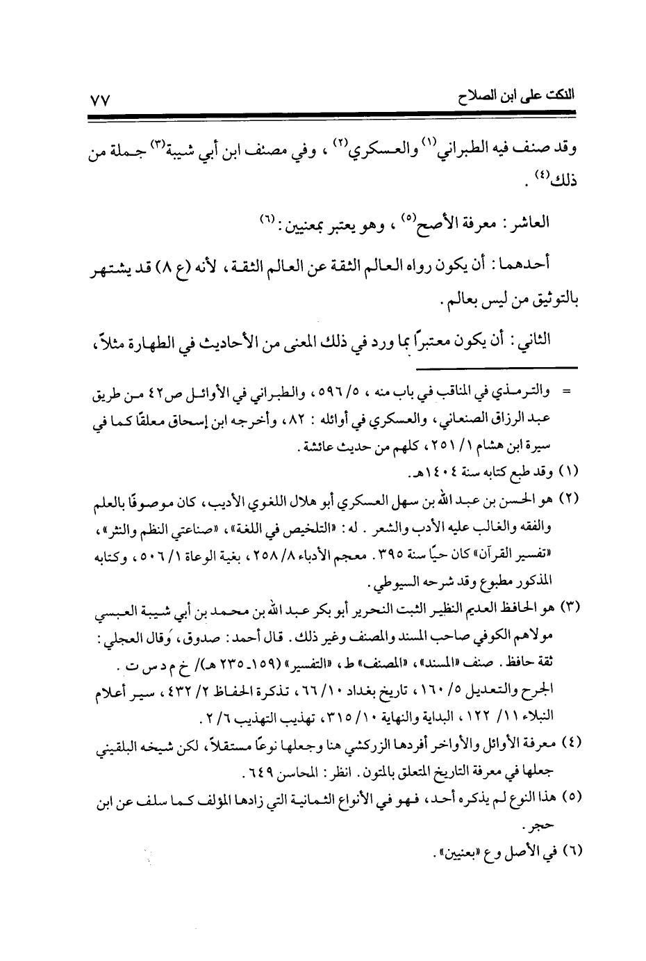 الْعَاشِر معرفَة الْأَصَح وَهُوَ يعْتَبر بمعنيين