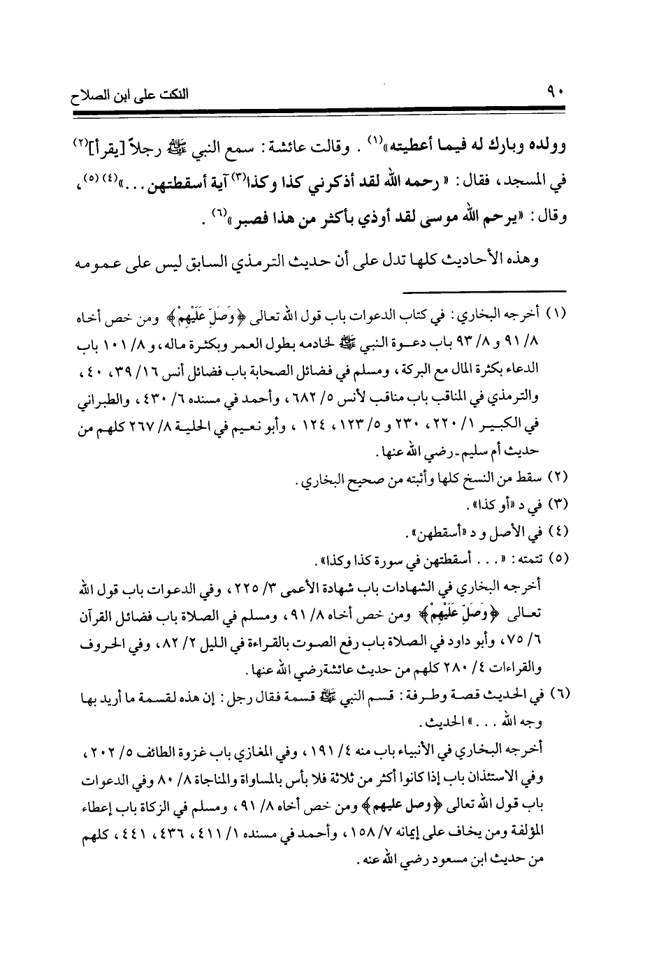 وَهَذِه الاحاديث كلهَا تدل على أَن حَدِيث التِّرْمِذِيّ السَّابِق لَيْسَ على عُمُومه