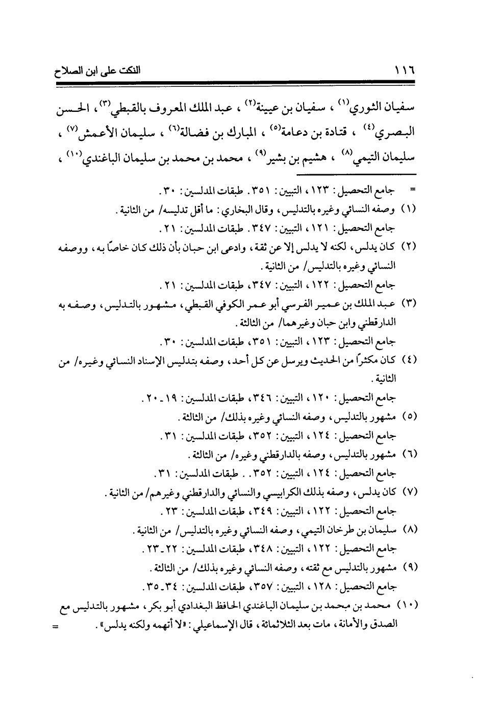 سُفْيَان الثَّوْريّ سُفْيَان بن عُيَيْنَة عبد الْملك الْمَعْرُوف بالقبطي الْحسن الْبَصْرِيّ قَتَادَة بن دعامة الْمُبَارك بن فضَالة سُلَيْمَان الْأَعْمَش سُلَيْمَان التَّيْمِيّ هشيم بن بشير مُحَمَّد بن مُحَمَّد بن سُلَيْمَان الباغندي