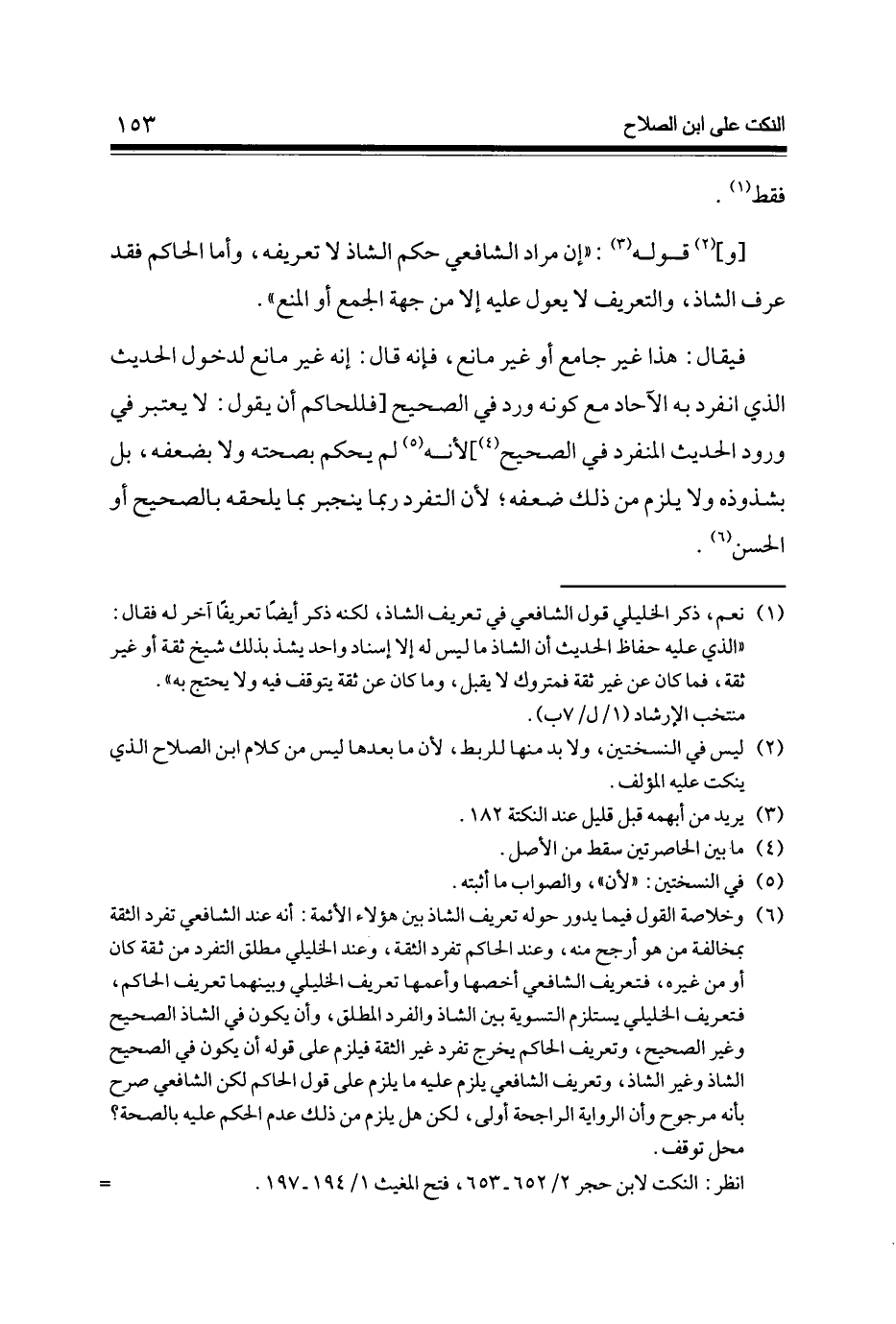 [و] قَوْله إِن مُرَاد الشَّافِعِي حكم الشاذ لَا تَعْرِيفه وَأما الْحَاكِم فقد عرف الشاذ والتعريف لَا يعول عَلَيْهِ إِلَّا من جِهَة الْجمع أَو الْمَنْع