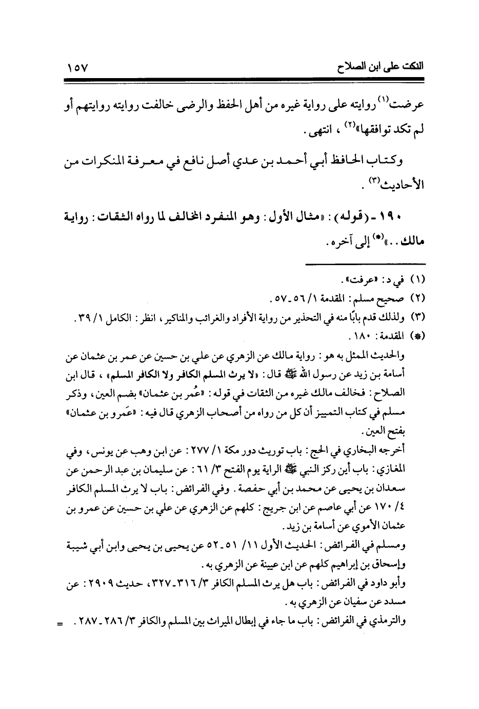 190 - (قَوْله) مِثَال الأول وَهُوَ الْمُنْفَرد الْمُخَالف لما رَوَاهُ الثِّقَات رِوَايَة مَالك إِلَى آخِره
