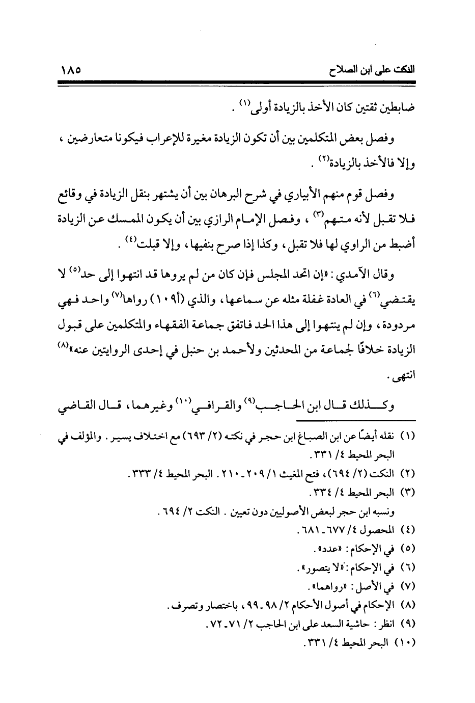 وَقَالَ الْآمِدِيّ إِن اتَّحد الْمجْلس فَإِن كَانَ من لم يروها قد انْتَهوا إِلَى حد لَا يَقْتَضِي فِي الْعَادة غَفلَة مثله عَن سماعهَا وَالَّذِي (أ 109) رَوَاهَا وَاحِد فَهِيَ مَرْدُودَة وَإِن لم ينْتَهوا إِلَى هَذَا الْحَد فاتفق جمَاعَة الْفُقَهَاء والمتكلمين على قبُول الزِّيَادَة خلافًا لجَماعَة من الْمُحدثين وَلأَحْمَد بن حَنْبَل فِي إِحْدَى الرِّوَايَتَيْنِ عَنهُ انْتهى