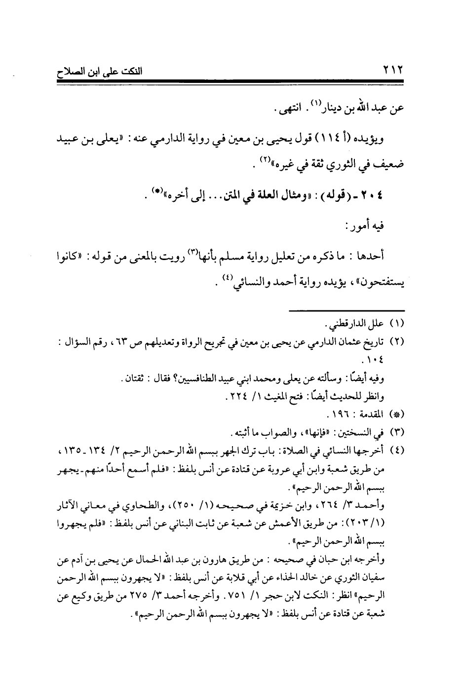 204 - (قَوْله) وَمِثَال الْعلَّة فِي الْمَتْن إِلَى أَخّرهُ