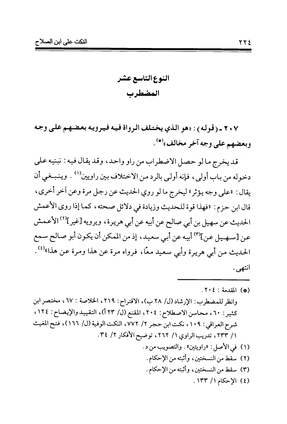 207 - (قَوْله) هُوَ الَّذِي يخْتَلف الروَاة فِيهِ فيرويه بَعضهم على وَجه وَبَعْضهمْ على وَجه آخر مُخَالف