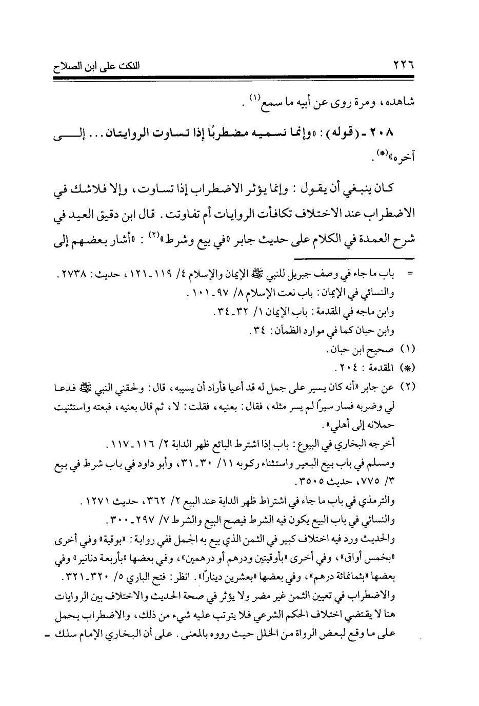 208 - (قَوْله) وَإِنَّمَا نُسَمِّيه مضطربا إِذا تَسَاوَت الرِّوَايَتَانِ إِلَى آخِره