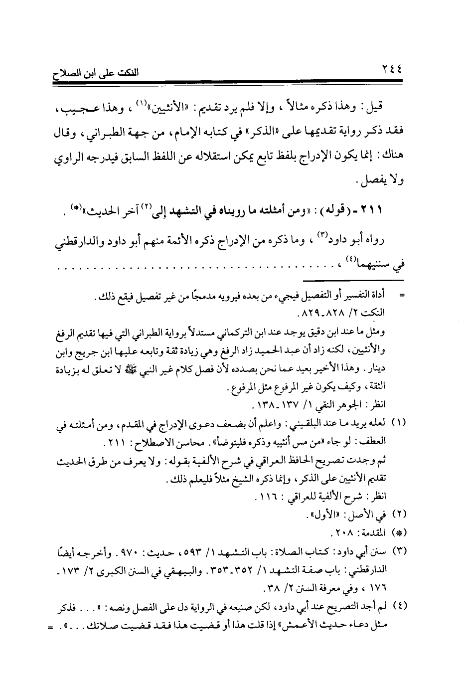 211 - (قَوْله) وَمن أمثلته مَا روينَاهُ فِي التَّشَهُّد إِلَى آخر الحَدِيث