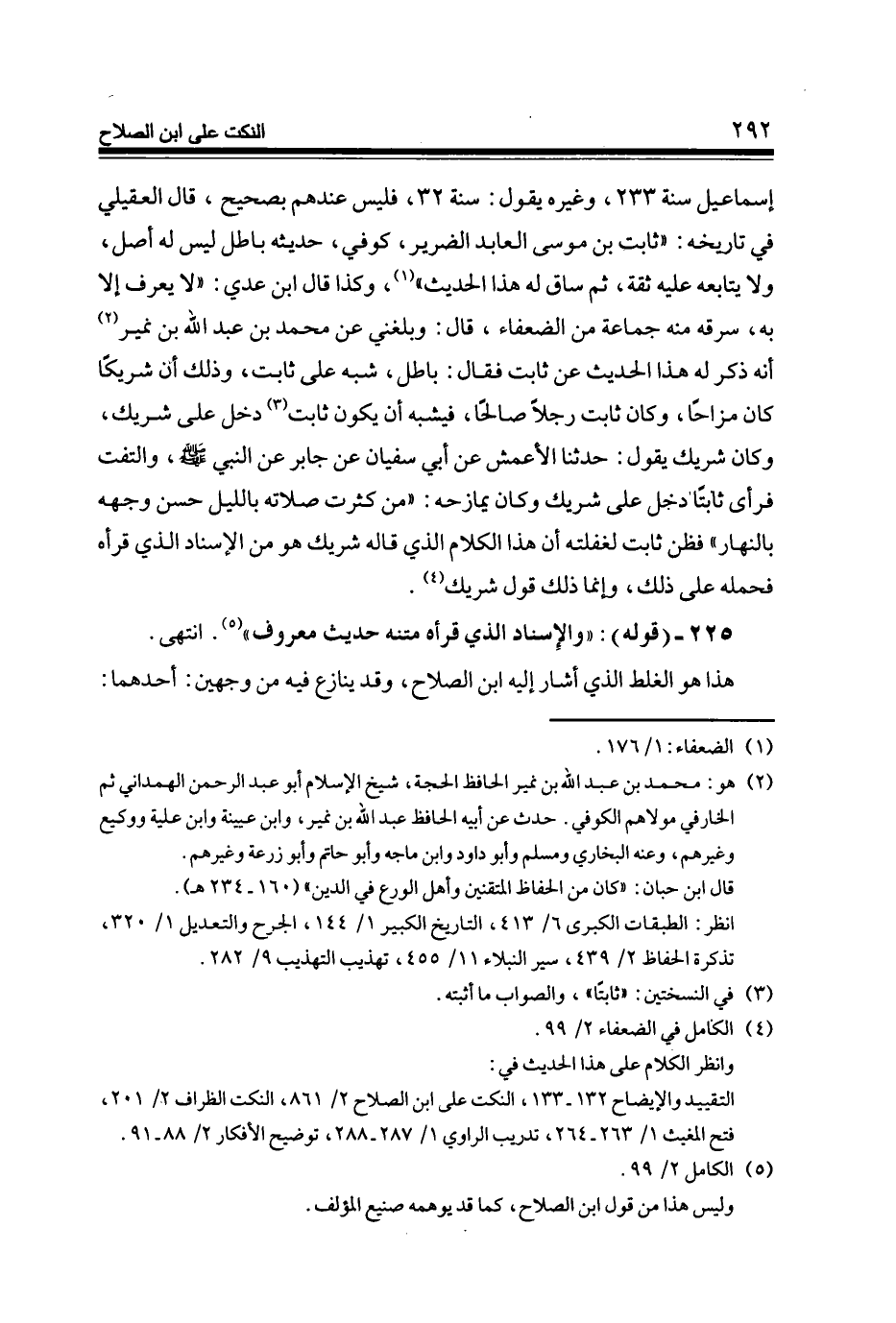 هَذَا هُوَ الْغَلَط الَّذِي أَشَارَ إِلَيْهِ ابْن الصّلاح وَقد يُنَازع فِيهِ من وَجْهَيْن أَحدهمَا