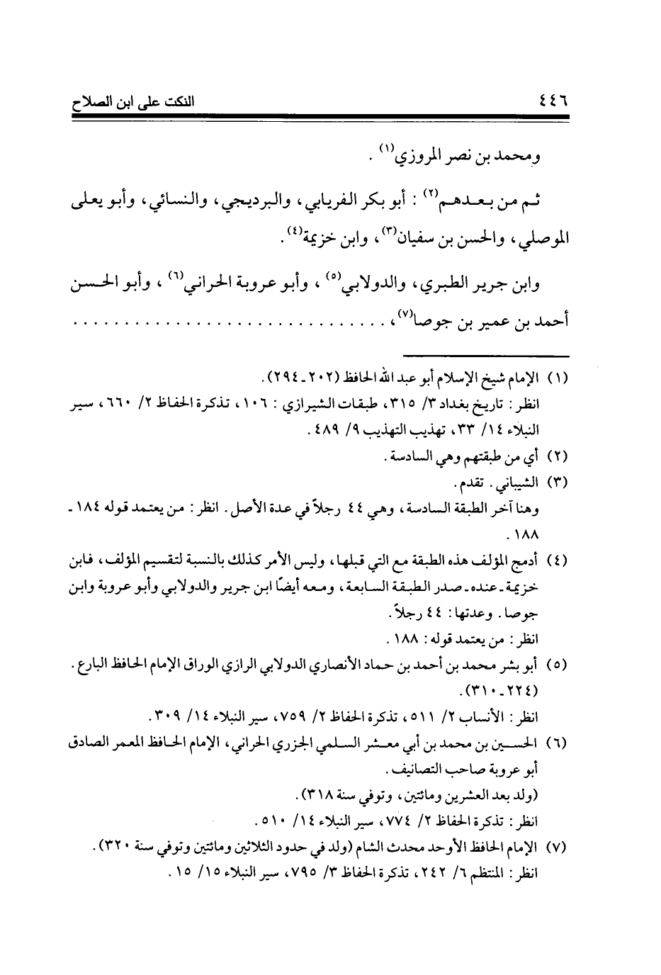 ثمَّ من بعدهمْ (2) أَبُو بكر الْفرْيَابِيّ والبرديجي وَالنَّسَائِيّ وَأَبُو يعلى الْموصِلِي وَالْحسن بن سُفْيَان (3) وَابْن خُزَيْمَة (4)