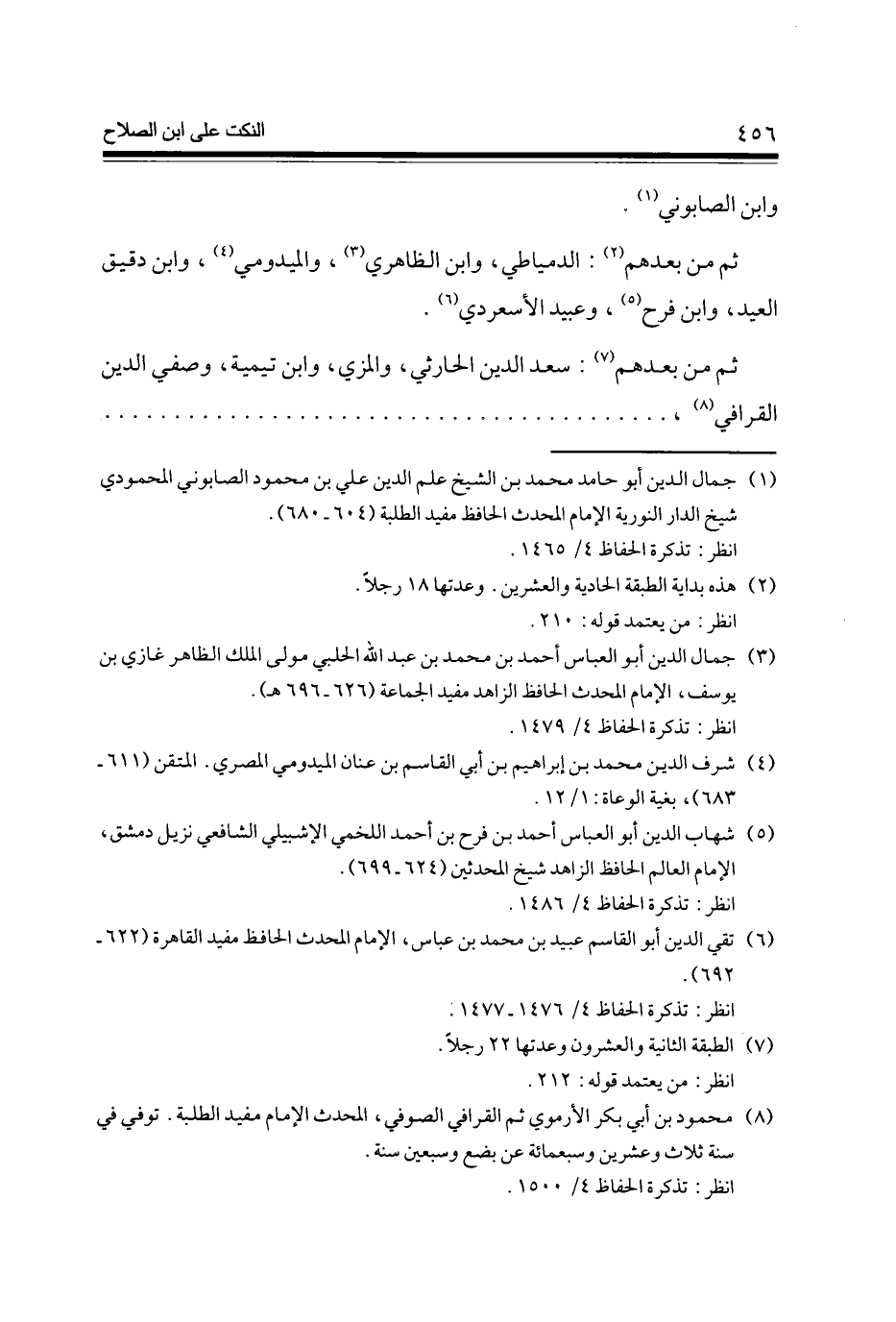 ثمَّ من بعدهمْ (7) سعد الدّين الْحَارِثِيّ والمزي وَابْن تَيْمِية وصفي الدّين الْقَرَافِيّ (8)