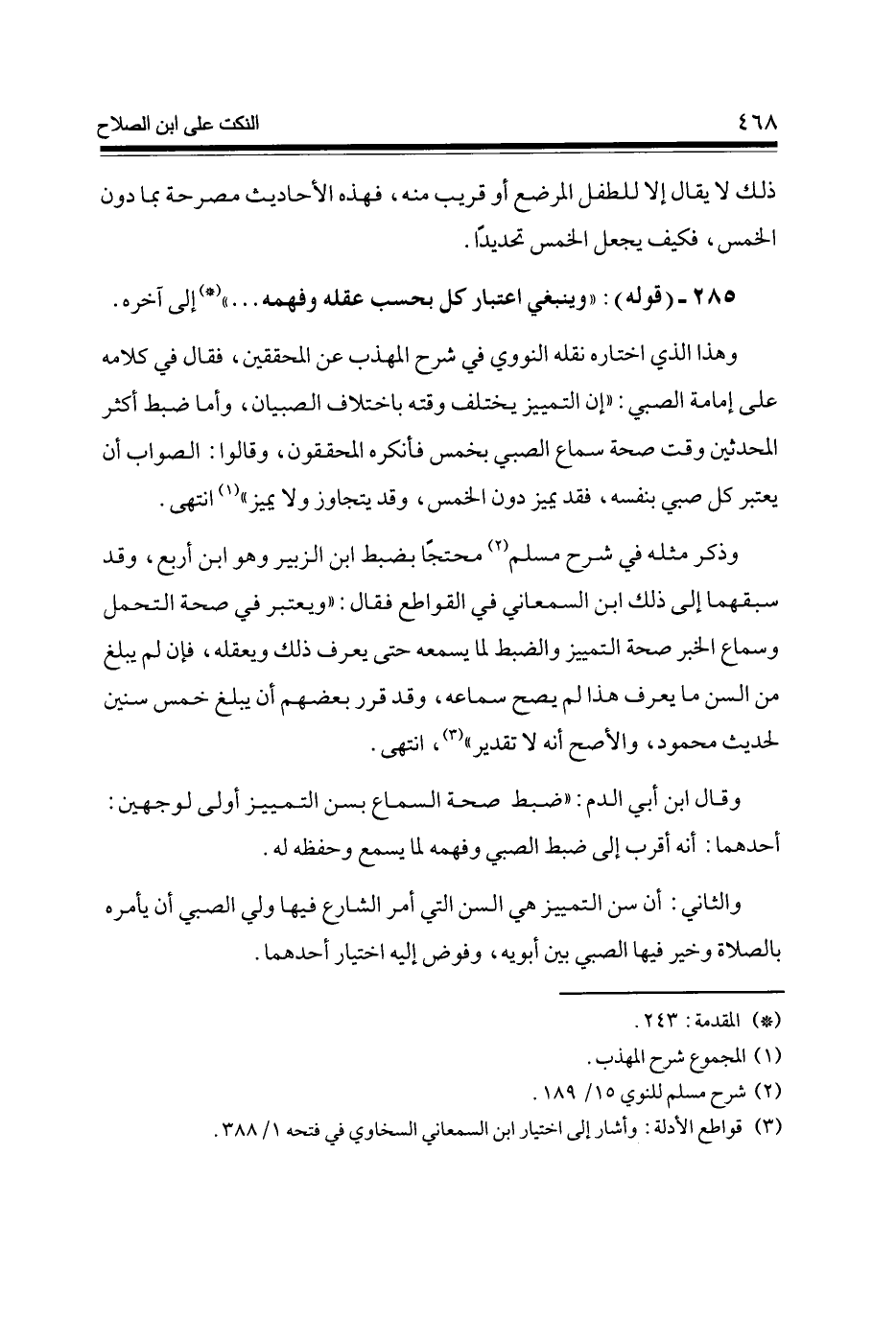 285 - (قَوْله) وَيَنْبَغِي اعْتِبَار كل بِحَسب عقله وفهمه (4 5 6 7 8 9 10 11 12 13 14 وفوض إِلَه اخْتِيَار أَحدهمَا
