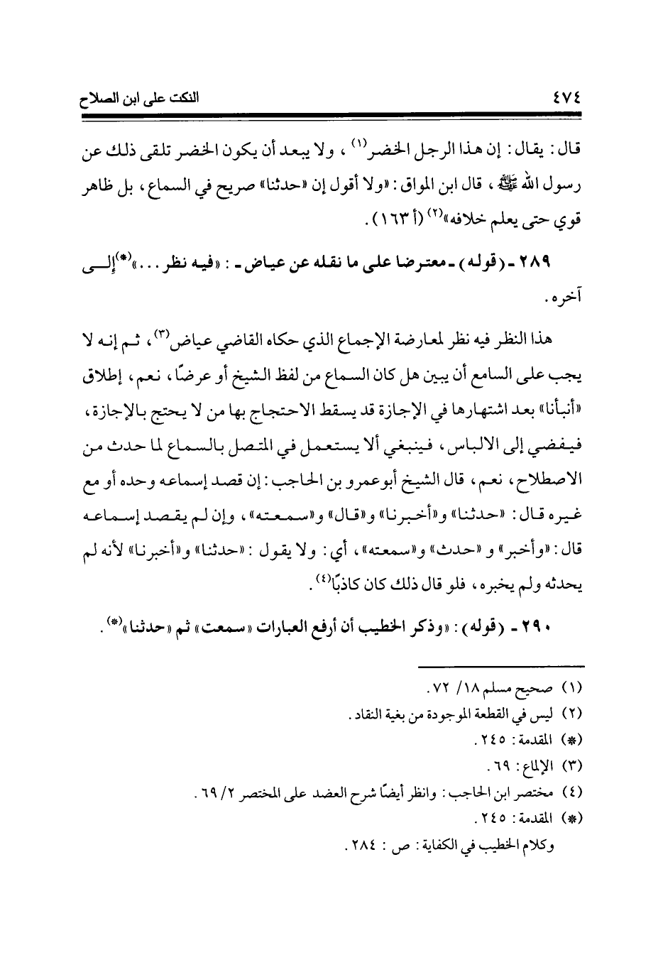 289 - (قَوْله) مُعْتَرضًا على مَا نَقله عَن عِيَاض - فِيهِ نظر (5 6 7 8 9 10 11 1)