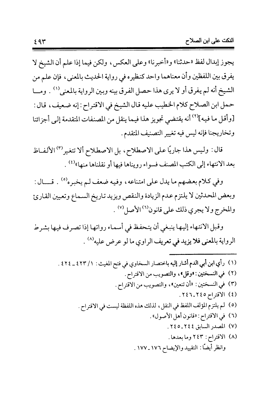 قَالَ وَلَيْسَ هَذَا جَارِيا على الِاصْطِلَاح بل الِاصْطِلَاح أَلا تَتَغَيَّر (3) الْأَلْفَاظ بعد الِانْتِهَاء إِلَى الْكتب المُصَنّف فَسَوَاء رويناها فِيهَا أَو نقلناها مِنْهَا (4)